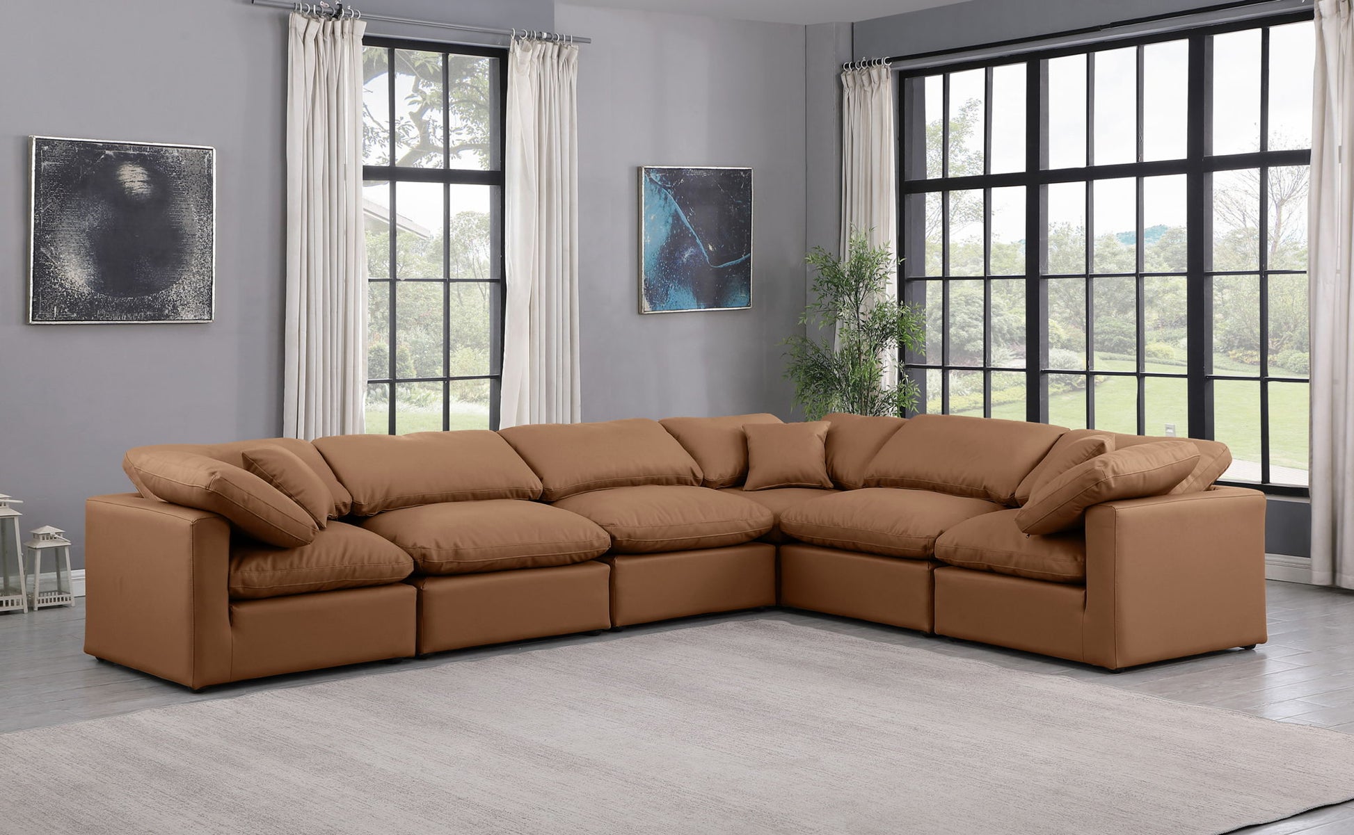 Indulge - Faux Leather 6 Piece Modular Corner Sectional - Cognac