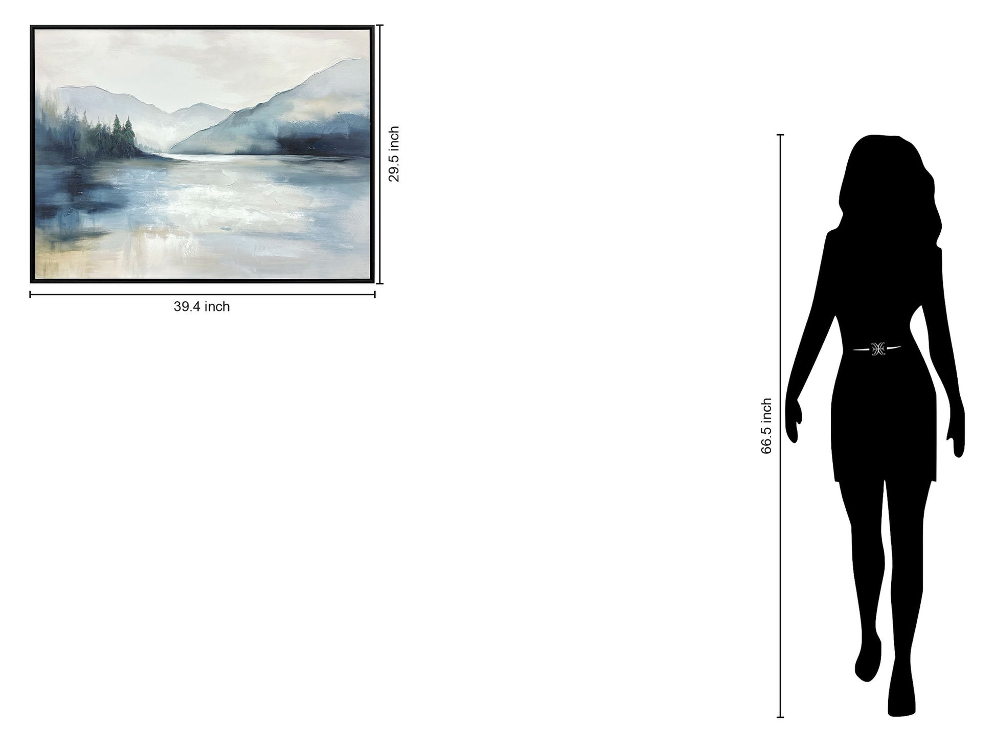 "Misty Lakeview I" Hand-Embellished Canvas In Frame - Blue / Gray