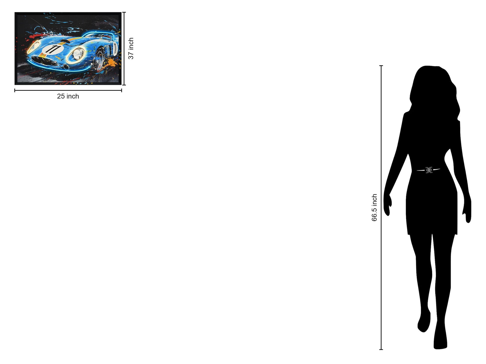"Neon Racer" Hand-Embellished LED In Frame - Blue / Black / Red / Orange