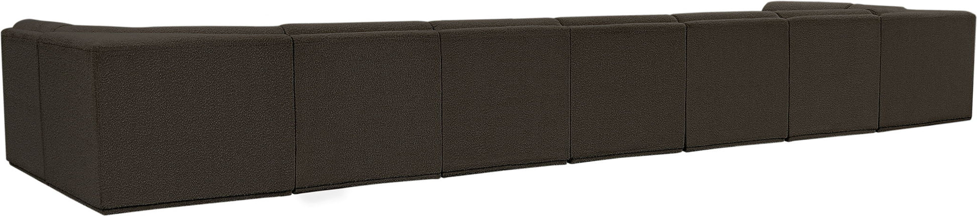 Meet the epitome of style and functionality with this Ollie boucle fabric living room sectional, part of the Ollie modular collection. A contemporary marvel, this sectional features chic and inviting rich boucle fabric upholstery, giving it a sumptuous texture that oozes elegance and luxury. Curved corners add to the visual look of the sectional while maximizing seating comfort while lounging, reading, or entertaining. Pair it with other items in the Ollie collection easily, thanks to an attachment latch underneath.