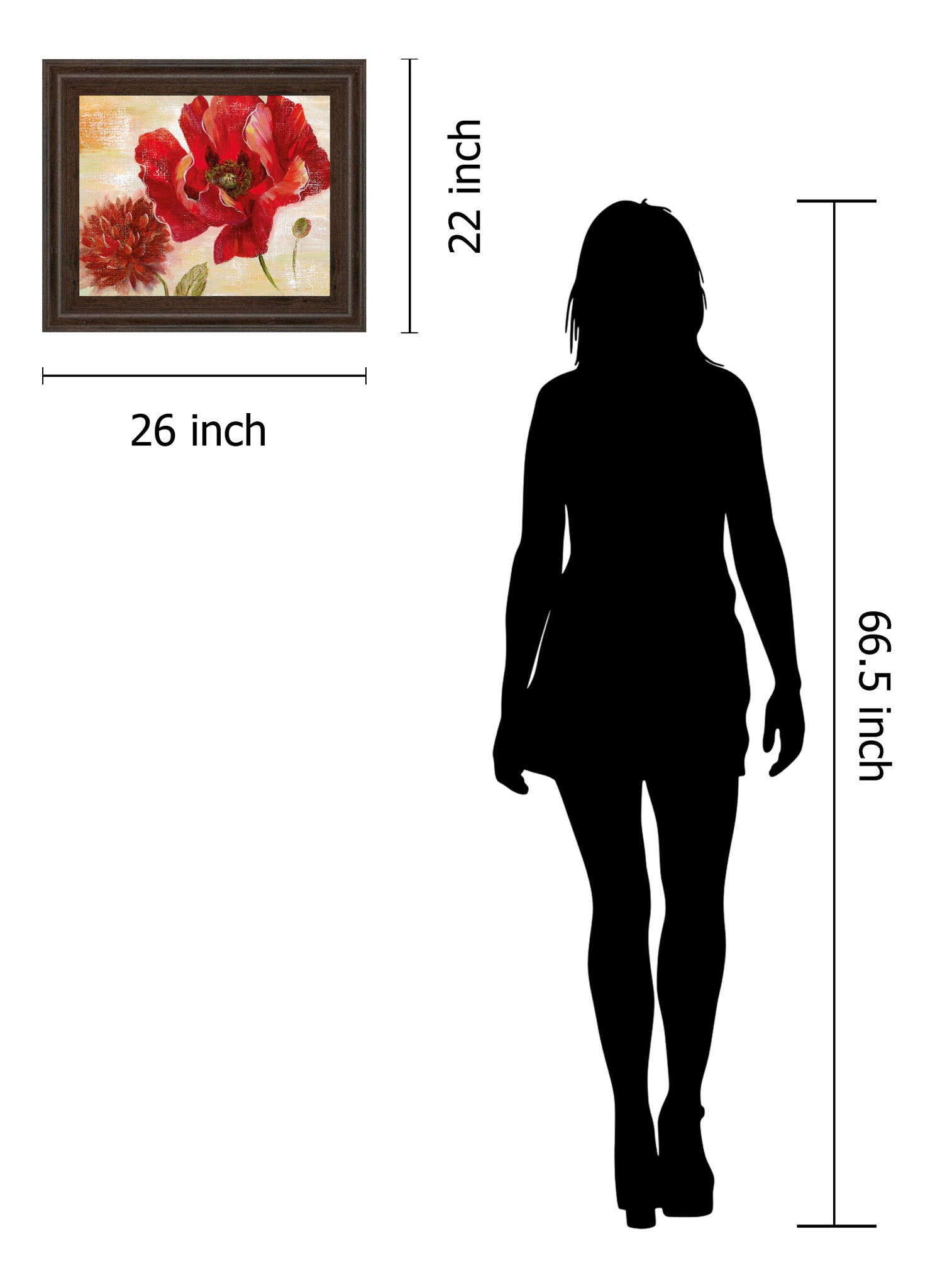 Step into a world where vibrant reds and delicate botanical details come alive in this captivating framed wall art. "Passion Blooms" showcases the rich textures and bold colors of poppies, set against a warm, textured background that adds depth and character. The cinnamon mocha frame complements the artwork perfectly, enhancing its contemporary charm while offering a sturdy, elegant finish. Measuring 26 by 22 inches, this mixed media piece brings a fresh burst of nature's beauty into any living room, bedroom, or office, inviting warmth and inspiration to your everyday surroundings.