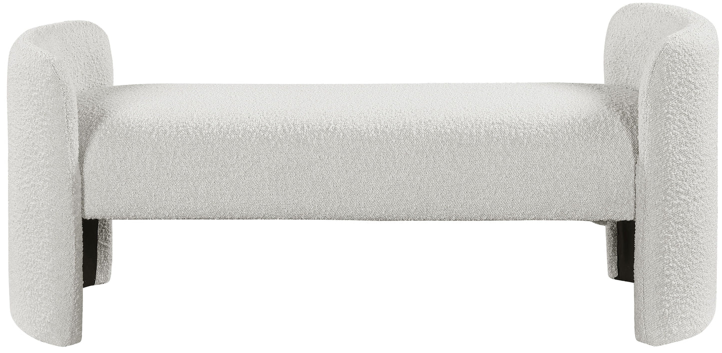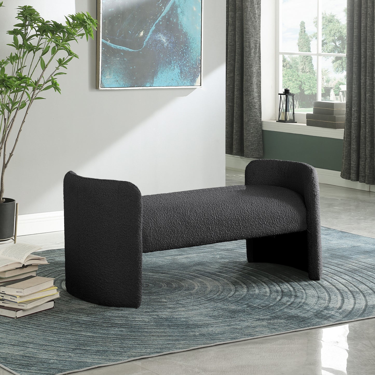 Place this Peyton Boucle Fabric Bench wherever you need an additional seat and a stylish and chic element added to your room. This pretty bench is just the thing to position at the end of a bed or in a foyer or entryway to provide a spot to sit while putting on shoes or pulling on boots. The rounded arms and the nonassuming style lend this bench an air of contemporary panache while the rich boucle fabric lets it easily mesh with your room's color scheme.