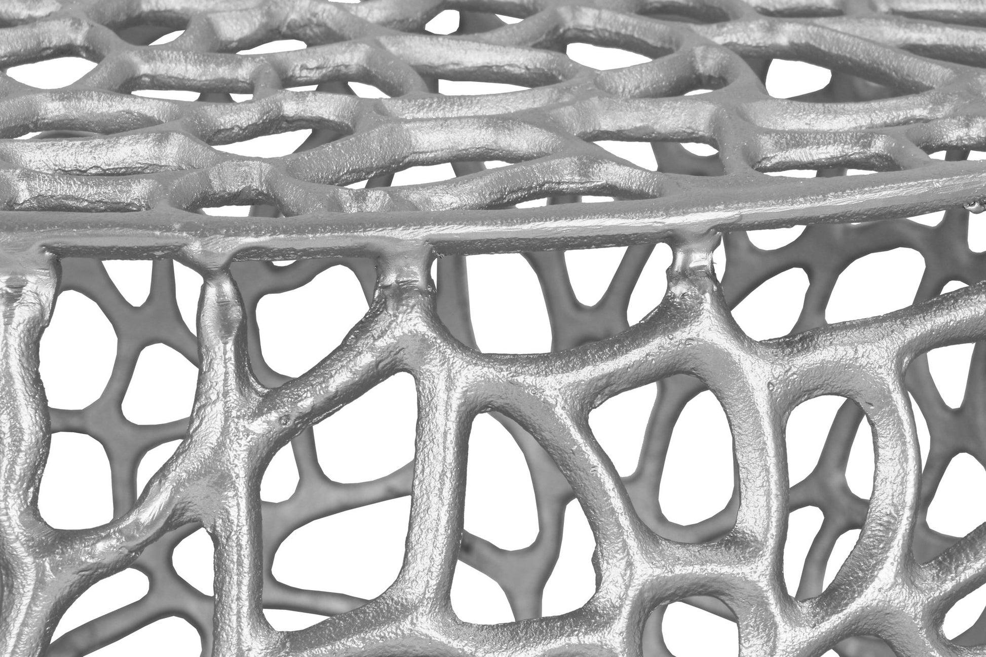 Bring modern elegance and up-to-the-minute sophistication home when you grab this Priya coffee table for your living room or family room. An intricate maze of woven aluminum, this table instantly grabs the eye from all angles. A perfect addition in front of a sectional or couch, this table's ample size gives it limitless possibilities - from display space and room for holding drinks to nearly 3 feet of room for setting up a Monopoly or Scrabble board on family game night.
