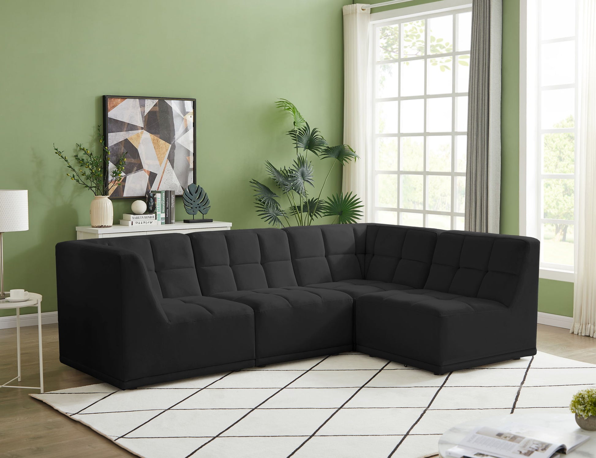 Bolster a contemporary vibe in your living room with this Relax modular sectional. Soft velvet upholstery offers delicate comfort, making this sectional cozy for anyone who sits in it. Biscuit tufting gives this sectional texture and a modern style, adding extra comfort and elegance to your living space. It s modular design allows you to create infinite configurations, making it a versatile piece to add to your home. A latch underneath the sectional makes it easy to attach to other pieces.