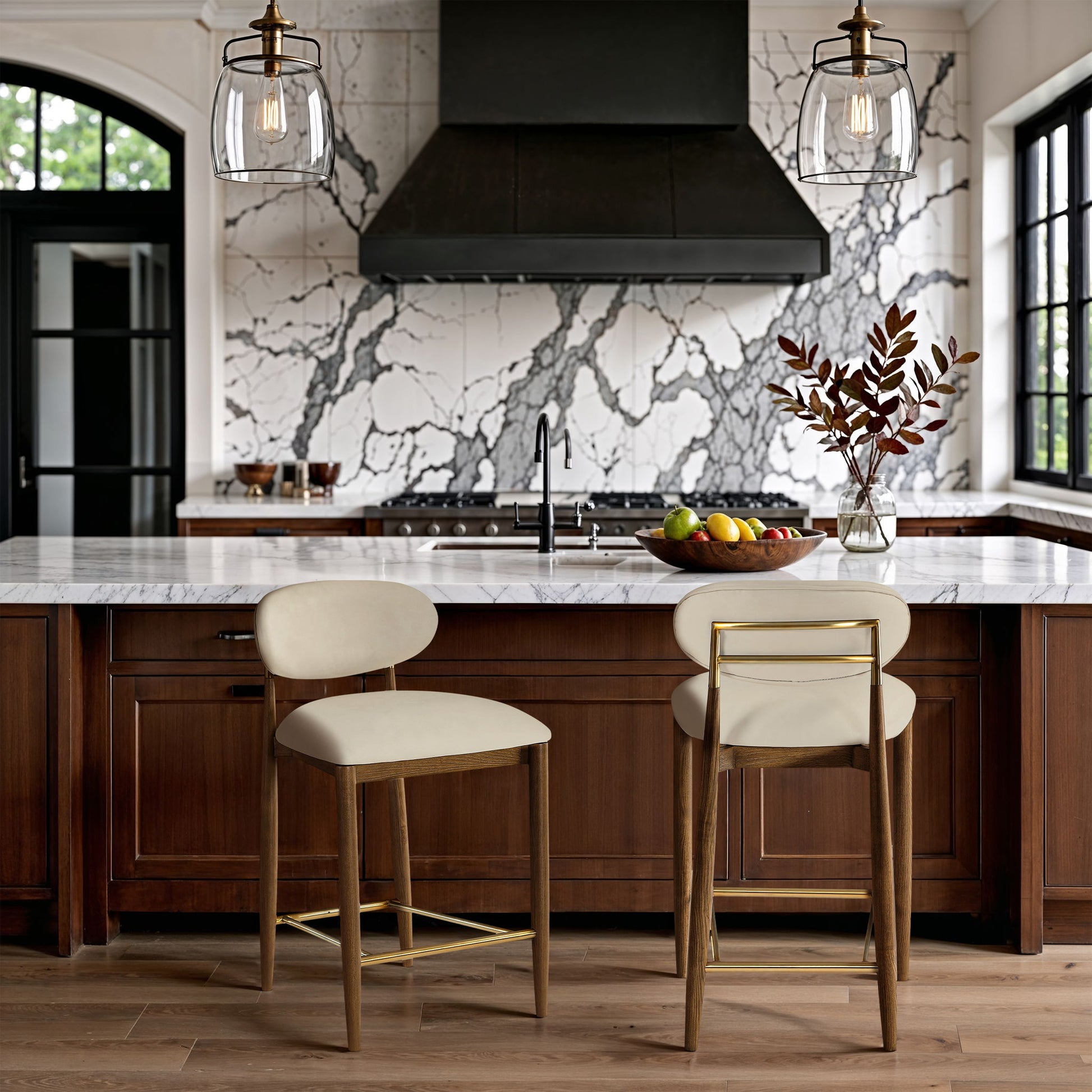 Riccio - Vegan Leather Upholstered Stool - Cream