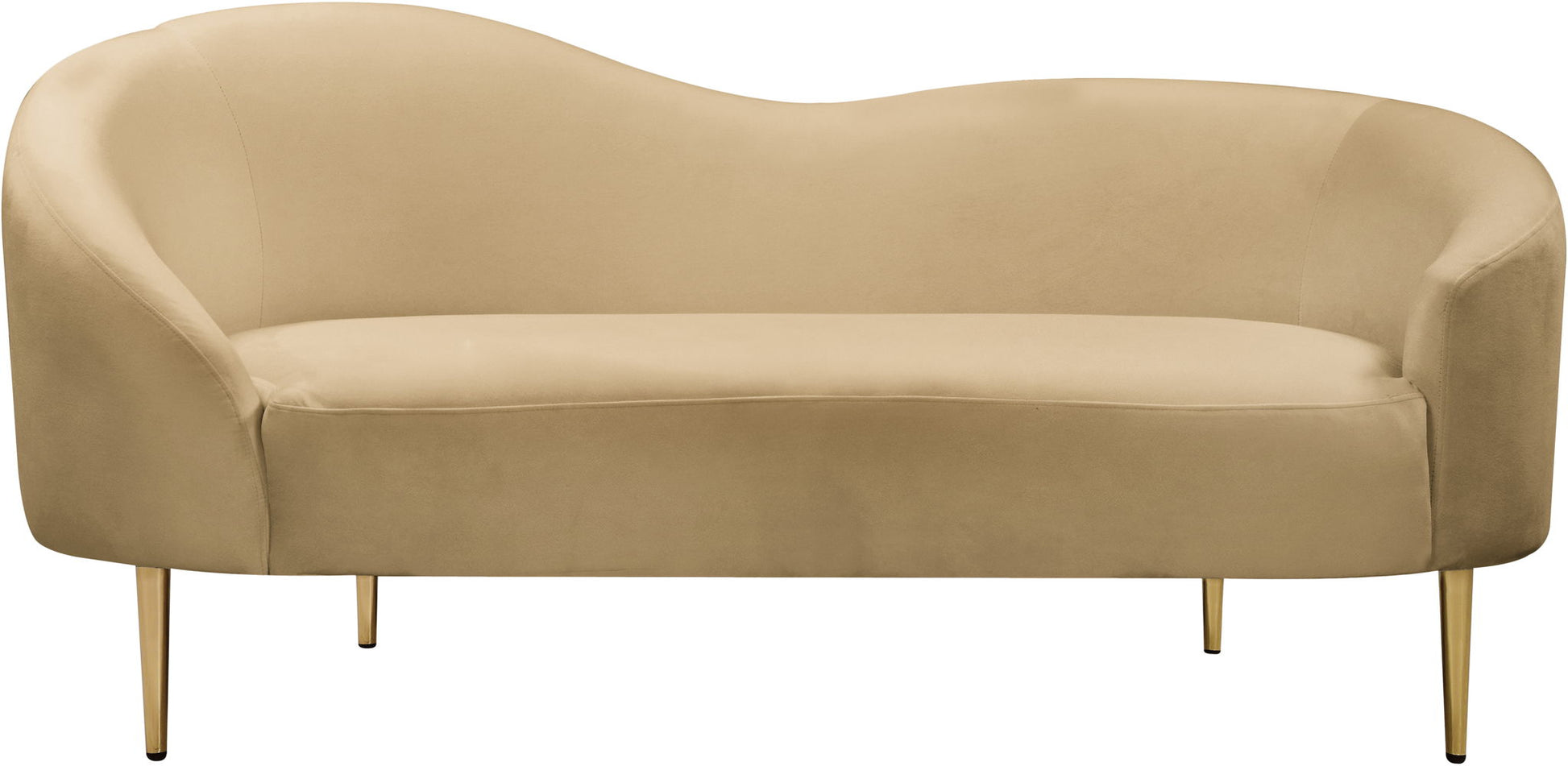 Get comfy while remaining chic in this elegant Ritz velvet loveseat. Plush-colored upholstery provides a soft texture that is pleasing to the senses, while its curved design offers a contemporary touch to your home furnishing. metal legs complement the loveseat's sophisticated color, creating a gallant piece anyone would be proud to display in their home.