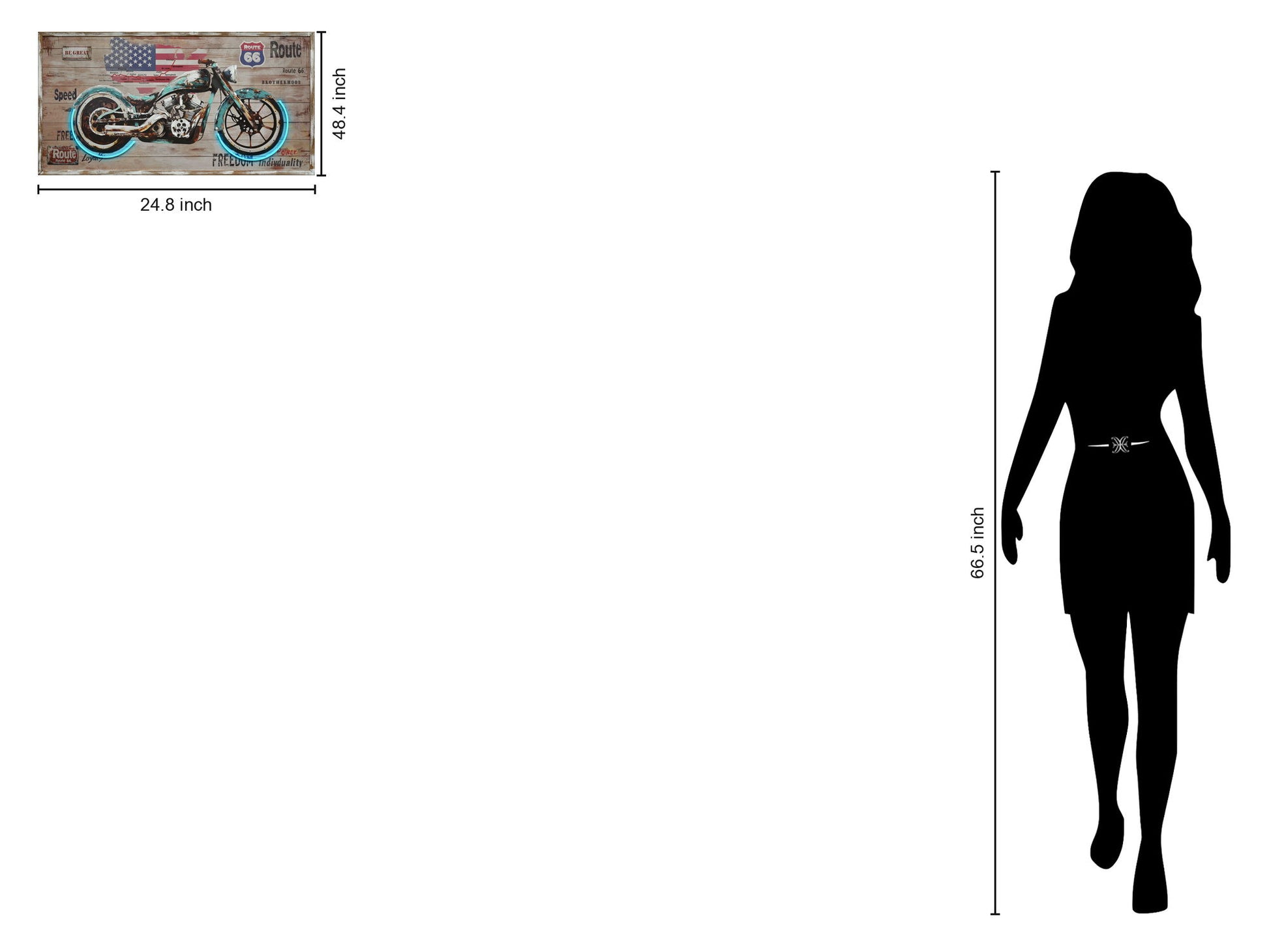 Capture the spirit of the open road with this striking neon wall art. Featuring a vintage motorcycle against a backdrop of Route 66, this piece evokes a sense of freedom and adventure. Perfect for adding a bold statement to any space, it's ideal for motorcycle enthusiasts and lovers of Americana.