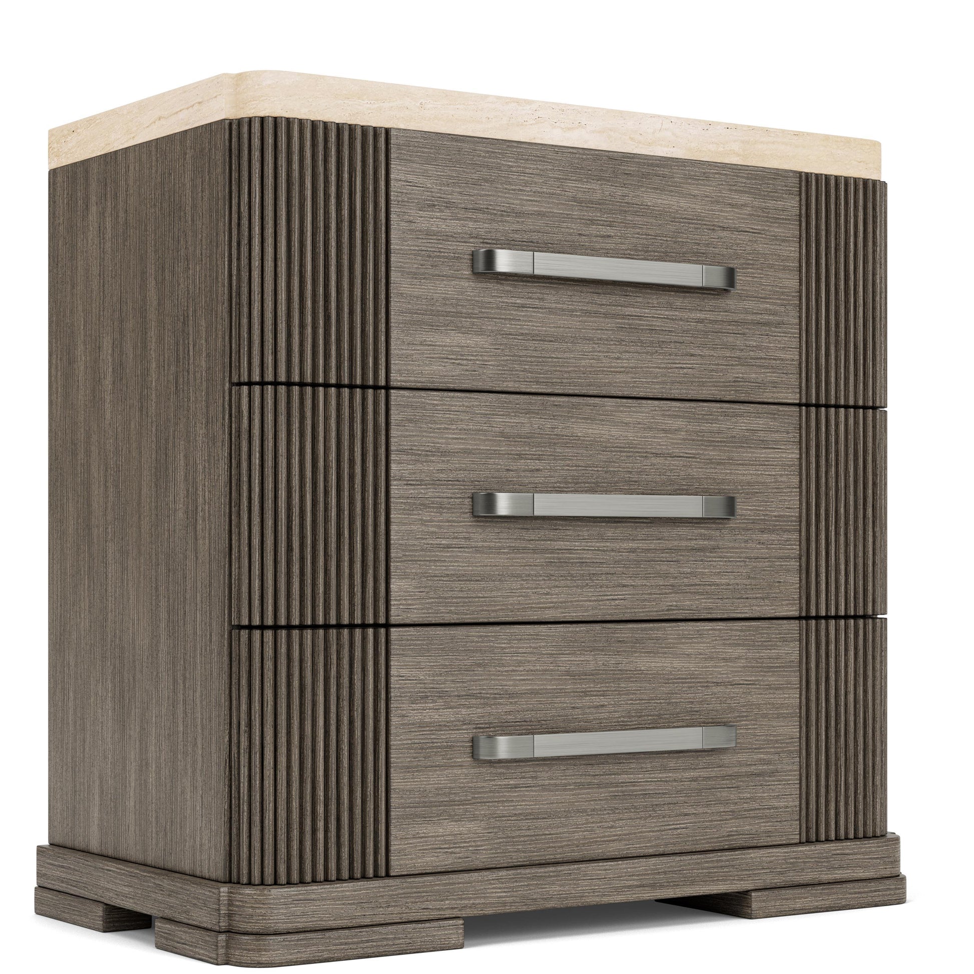 Sariel - Stone Top 3 Drawer Nightstand - Dark Brown