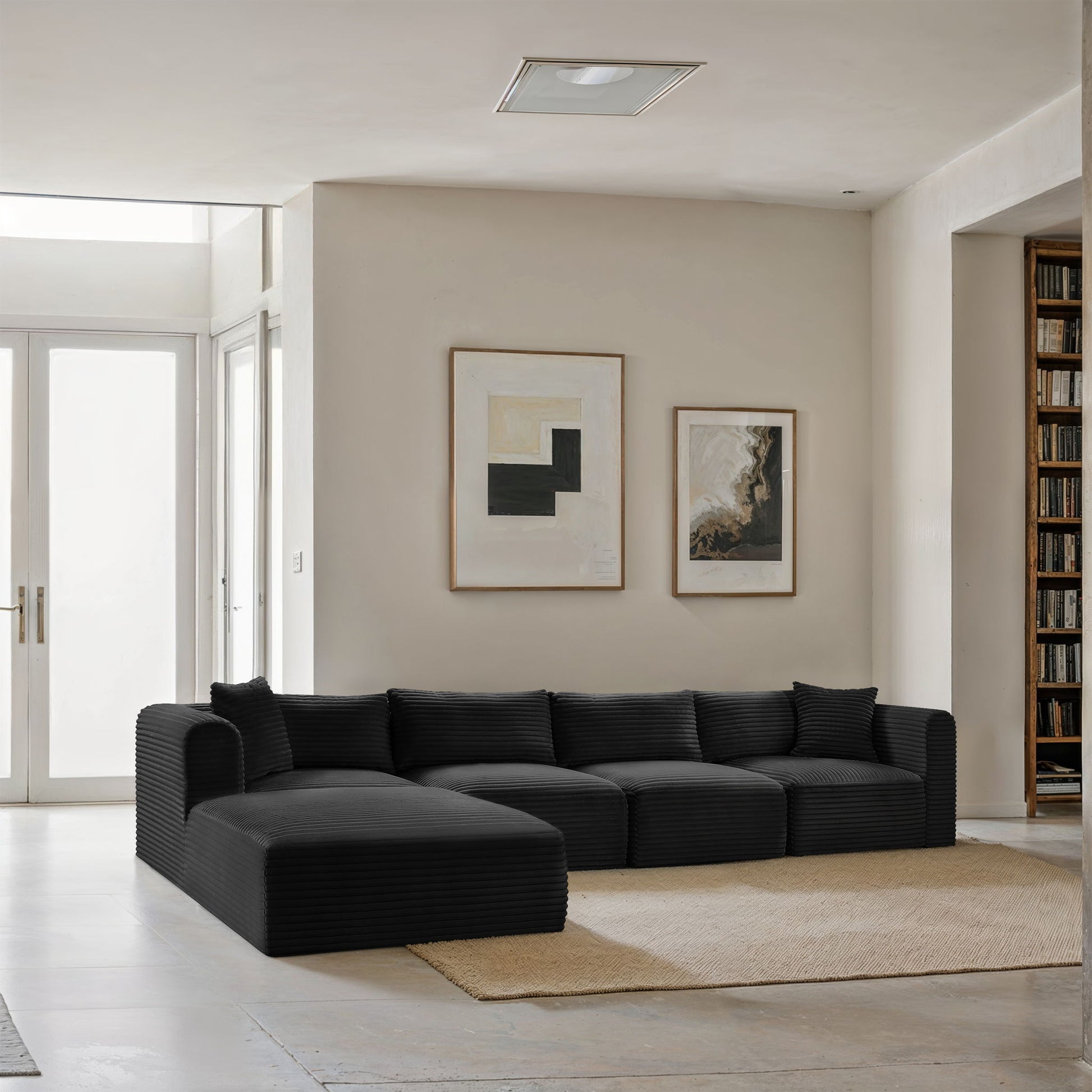 Shaggy - 5 Piece Modular Sectional With Ottoman - Black