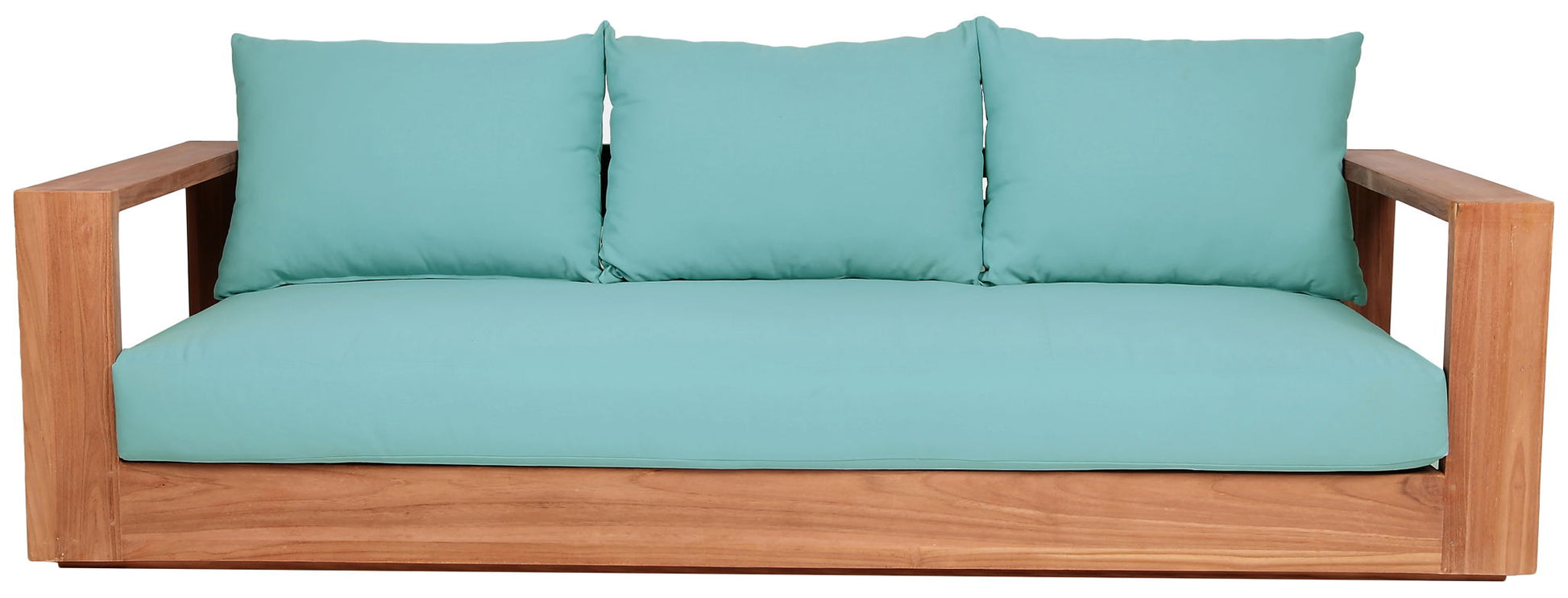 Make this Tulum teak outdoor patio sofa the go to spot for relaxing and entertaining guest in your outdoor space. This sofa features resilent water resistant fabric making it the perfect spot to rest your feet and enjoy the company of friends or family while you take in the sunrise. Teak construction makes it a tough addition for the patio or porch and gives it the longevity and durability it needs to weather the elements with beautiful ease. Pair it with other items from the Tulum collection for a look that impresses from every angle.