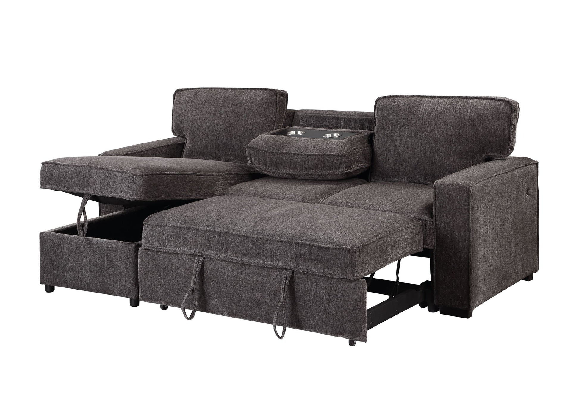 SKU:U0203-DARK GREY-REV PULL OUT SOFA BED-N