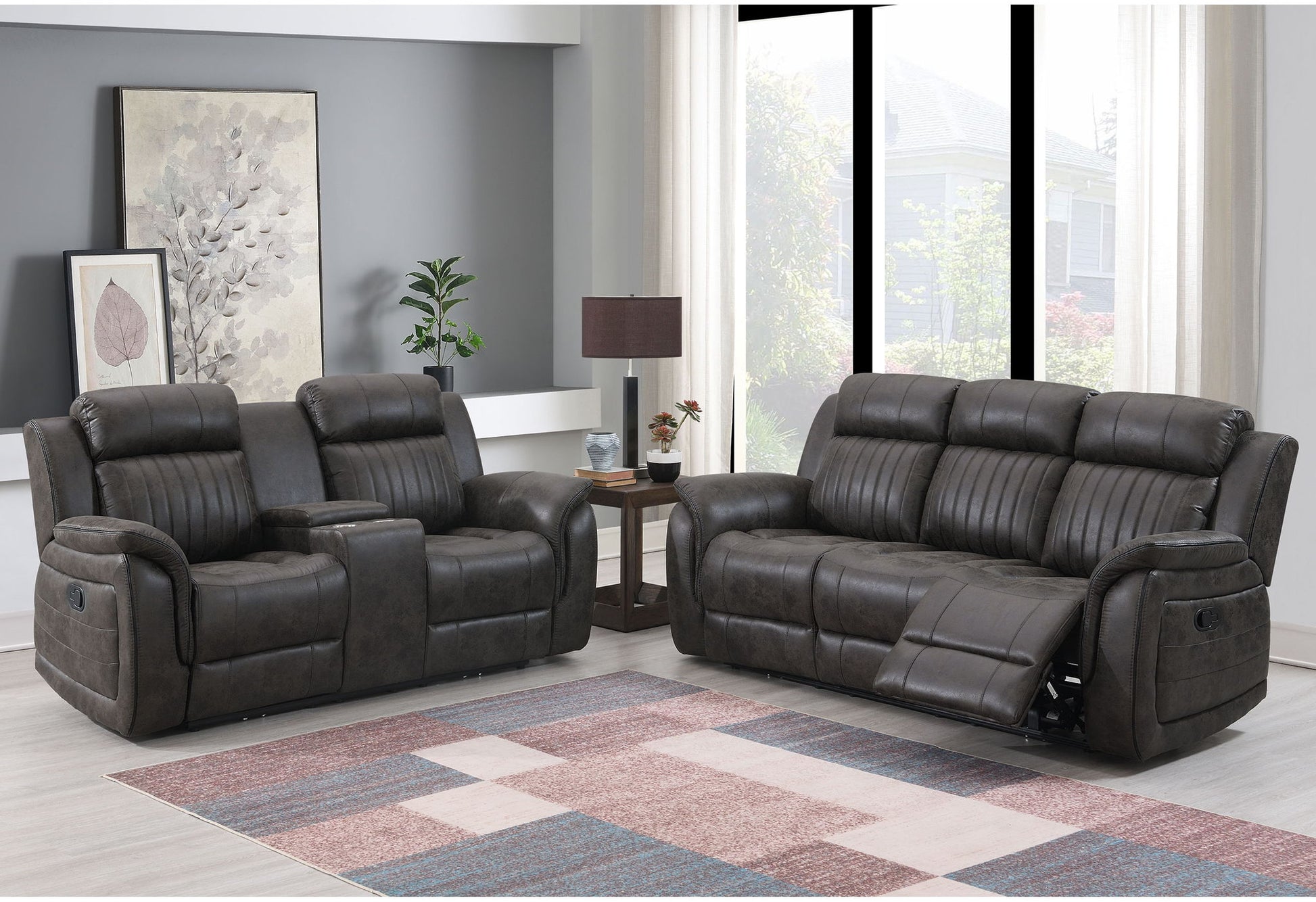 Enhance your living room with the U8517 collection by Global Furniture USA. An elegant living room set finished in easy-to-care charcoal fabric, and generously stuffed for additional comfort this set is designed for maximum relaxation. The reclining feature provides unmatched comfort and support, while the set is expertly crafted with high-quality materials to ensure durability and longevity. Providing you with ultimate relaxation after a long day, this stylish and functional set is a great way to update your living space.