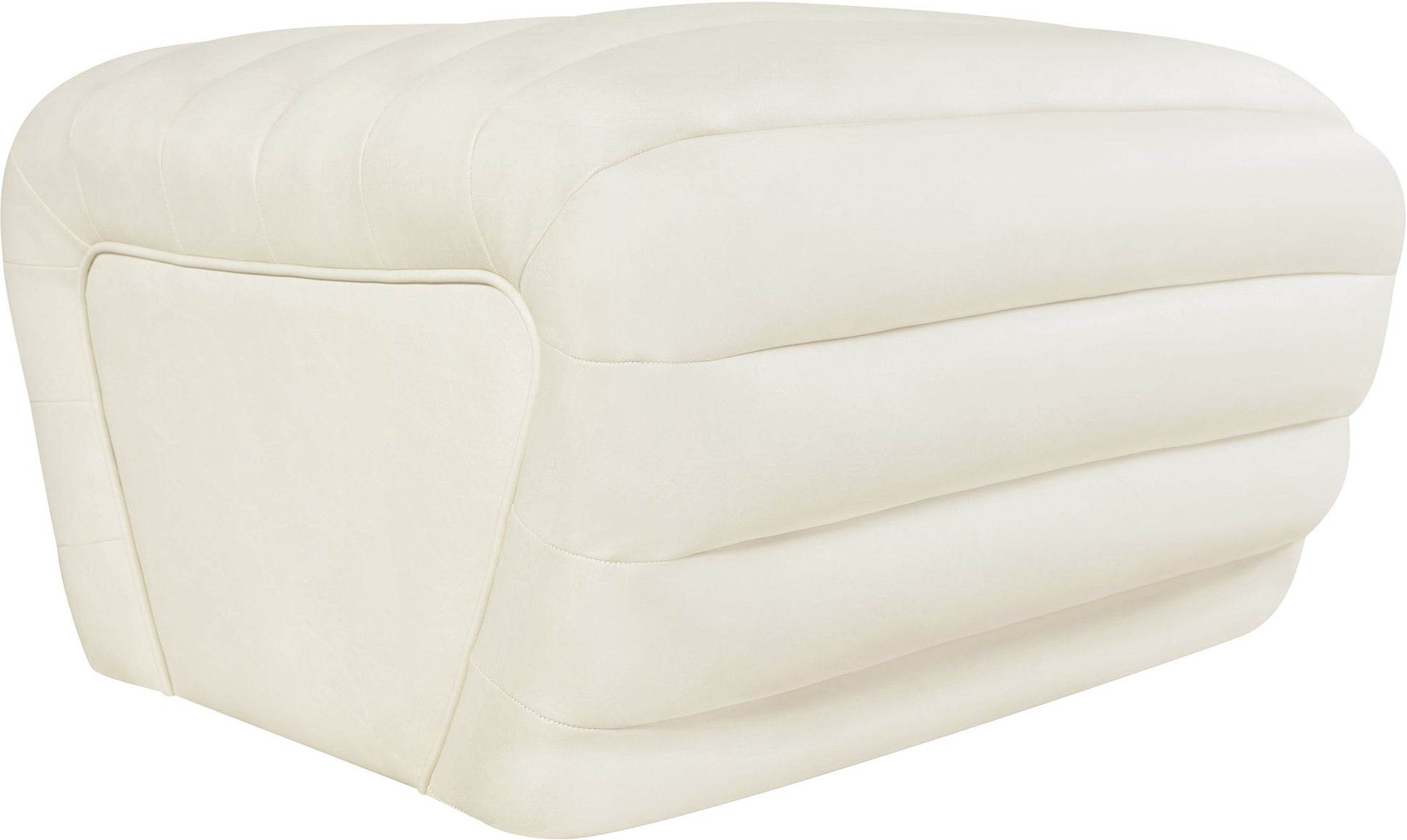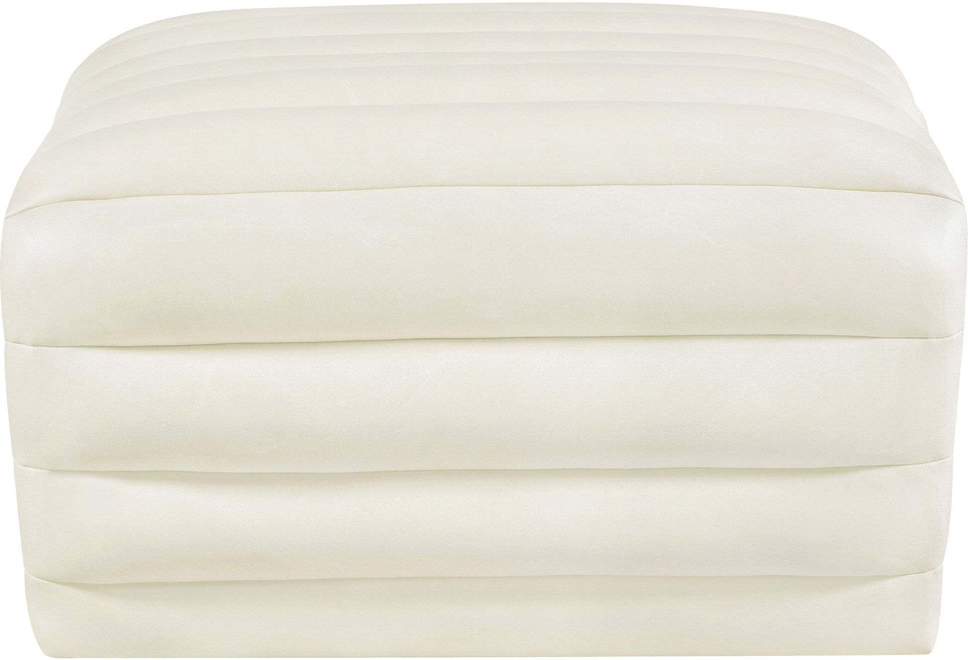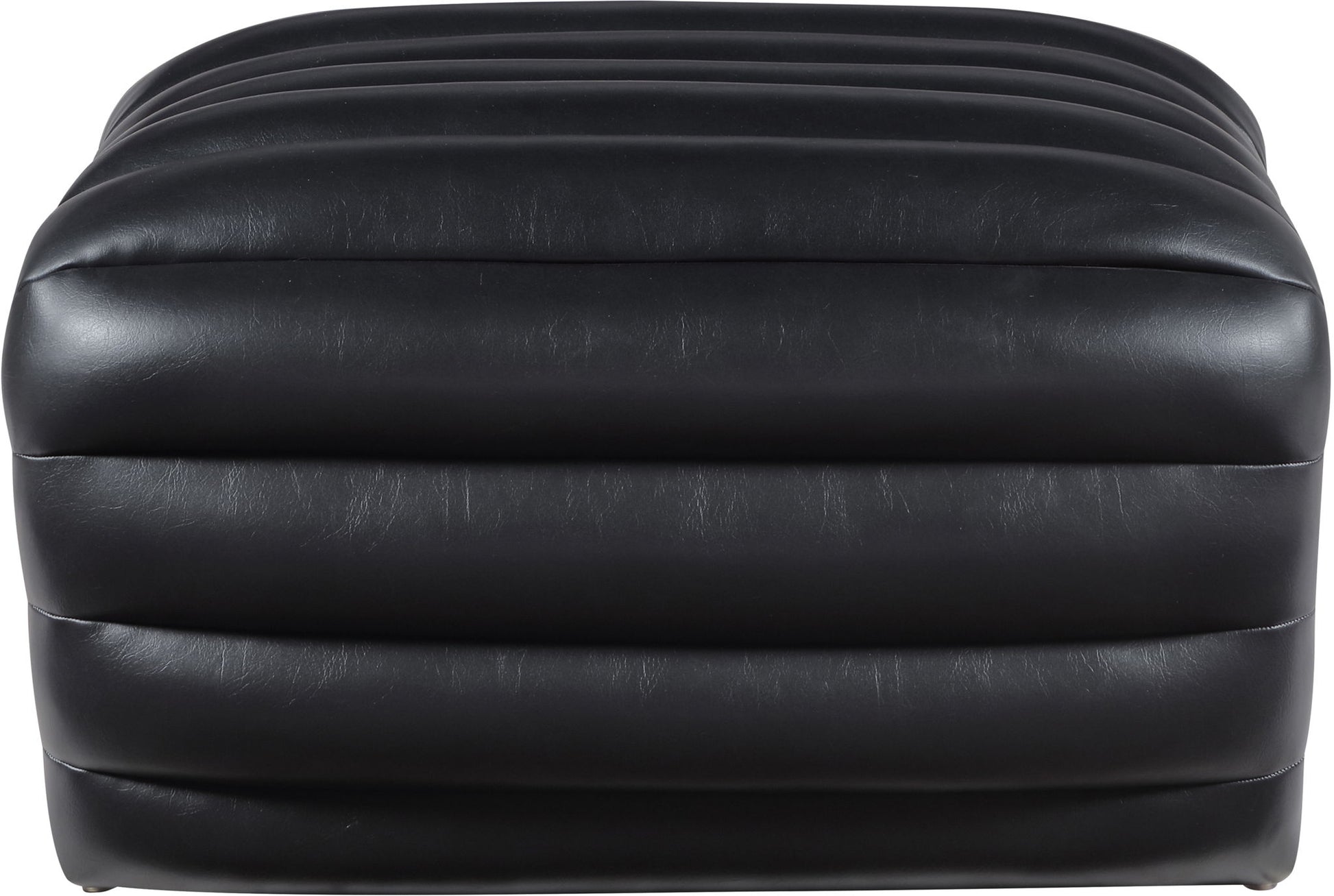 Indulge in a blend of sophistication and comfort with the Vega vegan leather ottoman. Draped in velvety soft vegan leather, this ottoman features bold deep channel tufting that creates a dynamic visual contrast. Its contemporary design elevates your space and invites you to experience luxury in every curve. Perfect for making a statement in your living room, office, or lounge, it redefines modern elegance with its unique and captivating style.
