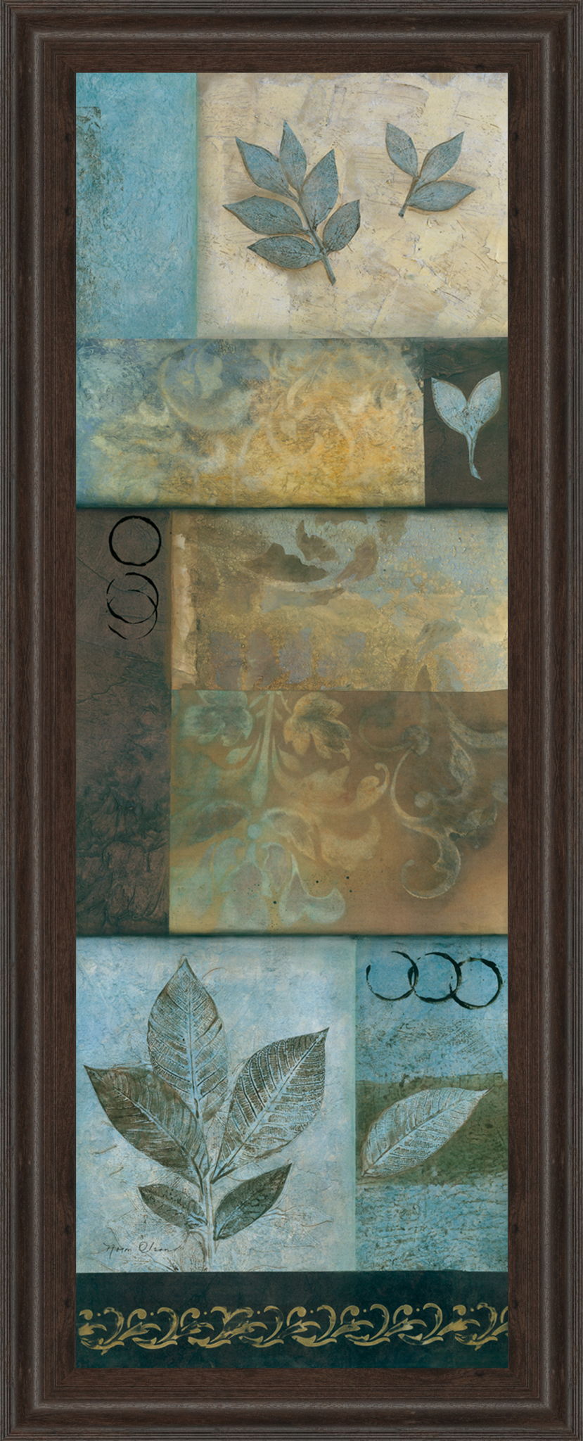 This framed wall art invites you into a tranquil world where nature's delicate beauty is captured through textured leaves and elegant scrollwork. Soft blues, earthy browns, and subtle golds blend seamlessly to create a soothing palette that enhances any living room, bedroom, or office space. Crafted with a sturdy brown MDF frame and premium real glass, it not only protects the artwork but also enriches the colors, making every detail come alive. Ready to hang and thoughtfully made in the USA, this piece brings a timeless, sophisticated charm that transforms your space into a serene retreat.