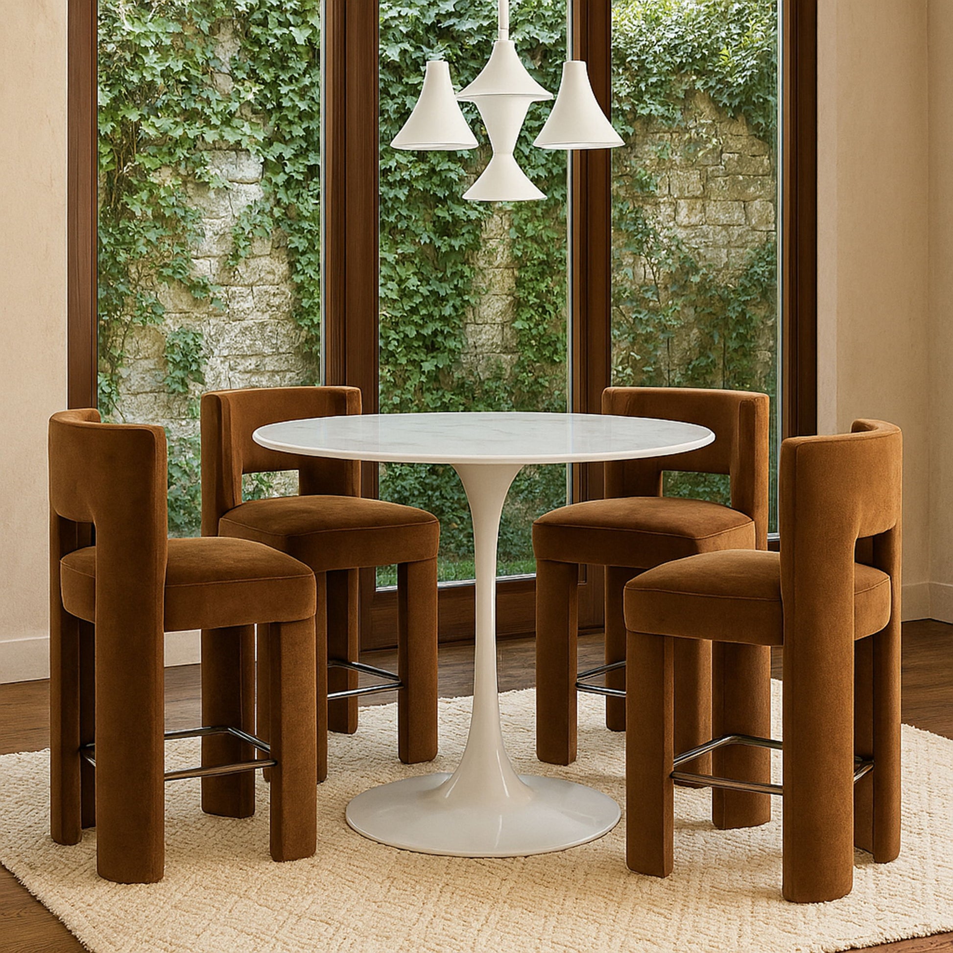 Sculptural and modern, the Zuno saddle velvet performance fabric upholstered counter stool makes a bold design statement. Its ultra-luxe velvet pairs with a solid wood frame for durability and comfort. With clean lines and a contemporary silhouette, it brings artful elegance to any dining space.